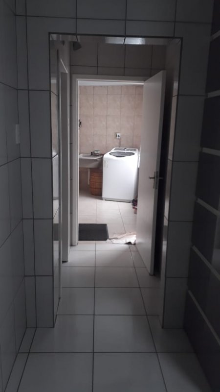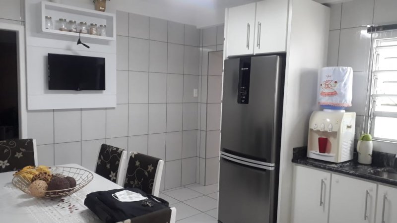 Casa de 2 pisos no bairro Progresso (Laguna-SC), com 3 quartos (sendo 1 suíte master), sala, cozinha, banheiro, área de serviço, churrasqueira e garagem para 2 carros.