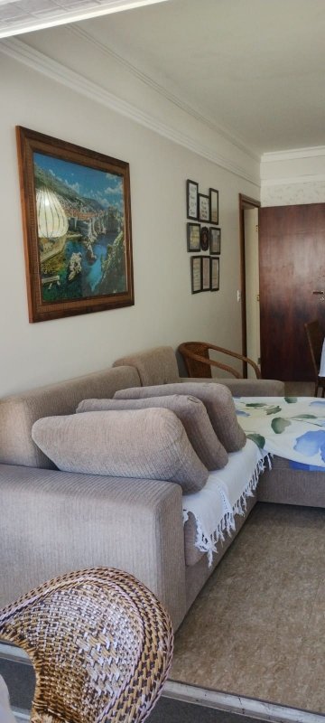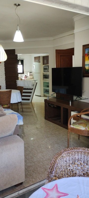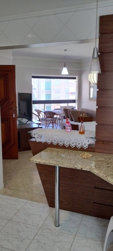 Apartamento no Mar Grosso e vista para o mar, possui 3 quartos (sendo 1 suíte), banheiro social, sala, cozinha, sacada com churrasqueira e 1 vaga de garagem.