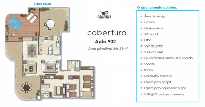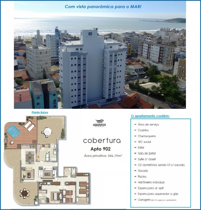 Cobertura com 3 quartos (sendo 1 suíte), 3 garagens, piscina, visão panorâmica. Prédio com Salão de Festas. Aceita imóveis e carros na negociação.