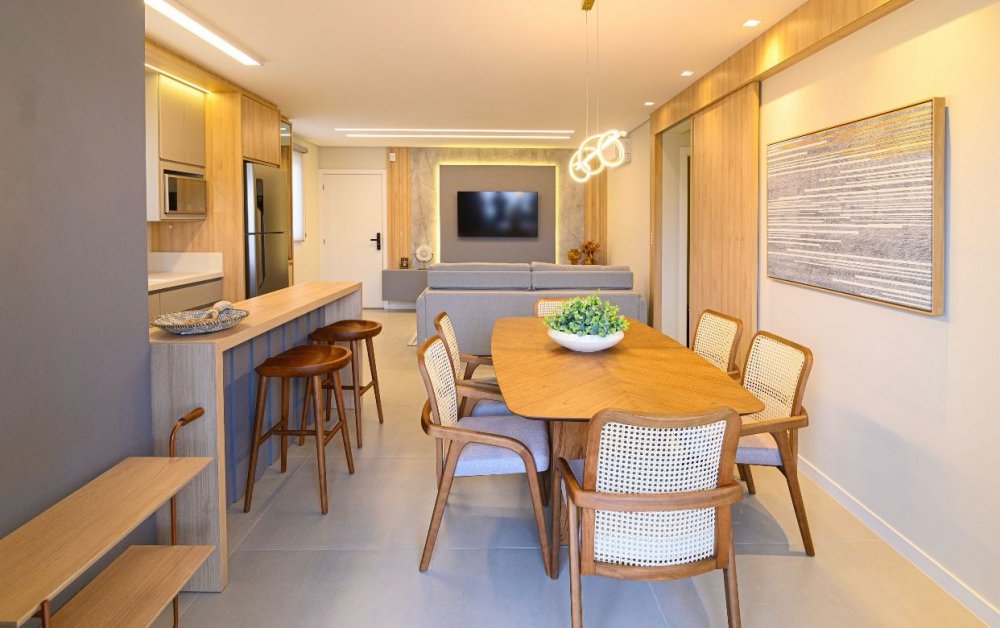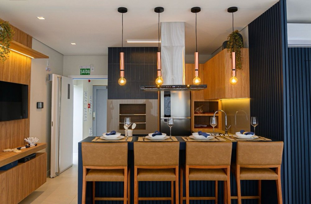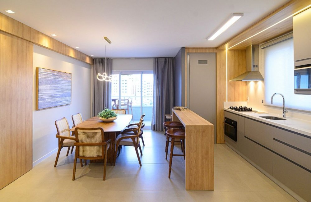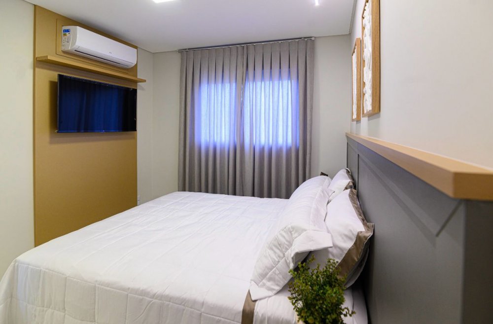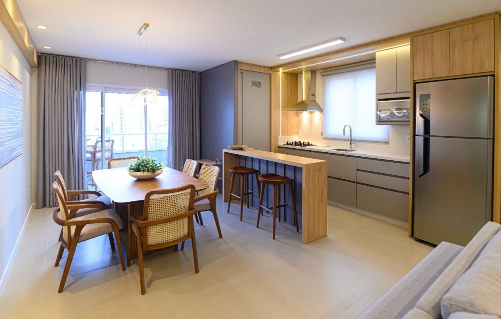 Apartamentos novos, bem localizados, com 3 quartos, sendo 1 suíte, banheiro, sala, cozinha, sacada com churrasqueira e 1 ou 2 garagens. Há unidades com 87m² e 91,6m² de área privativa. O edifício possui Espaço Gourmet e Playground.